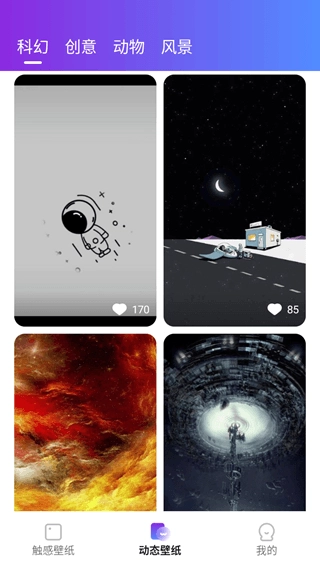 1、和传统动态壁纸不一样,触感壁纸融入了互动元素,能让你的桌面变得更有趣、更生动。