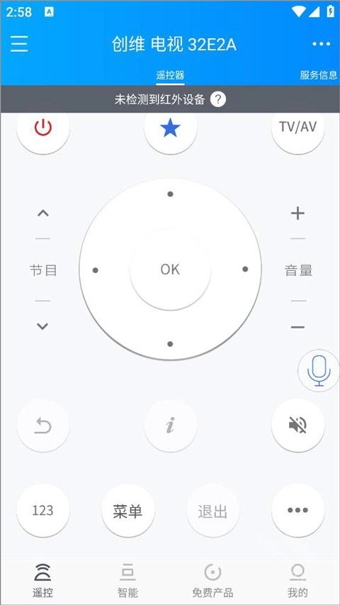 4、进入电视遥控界面,完成红外设备的检测与连接后,就能对电视进行控制了。