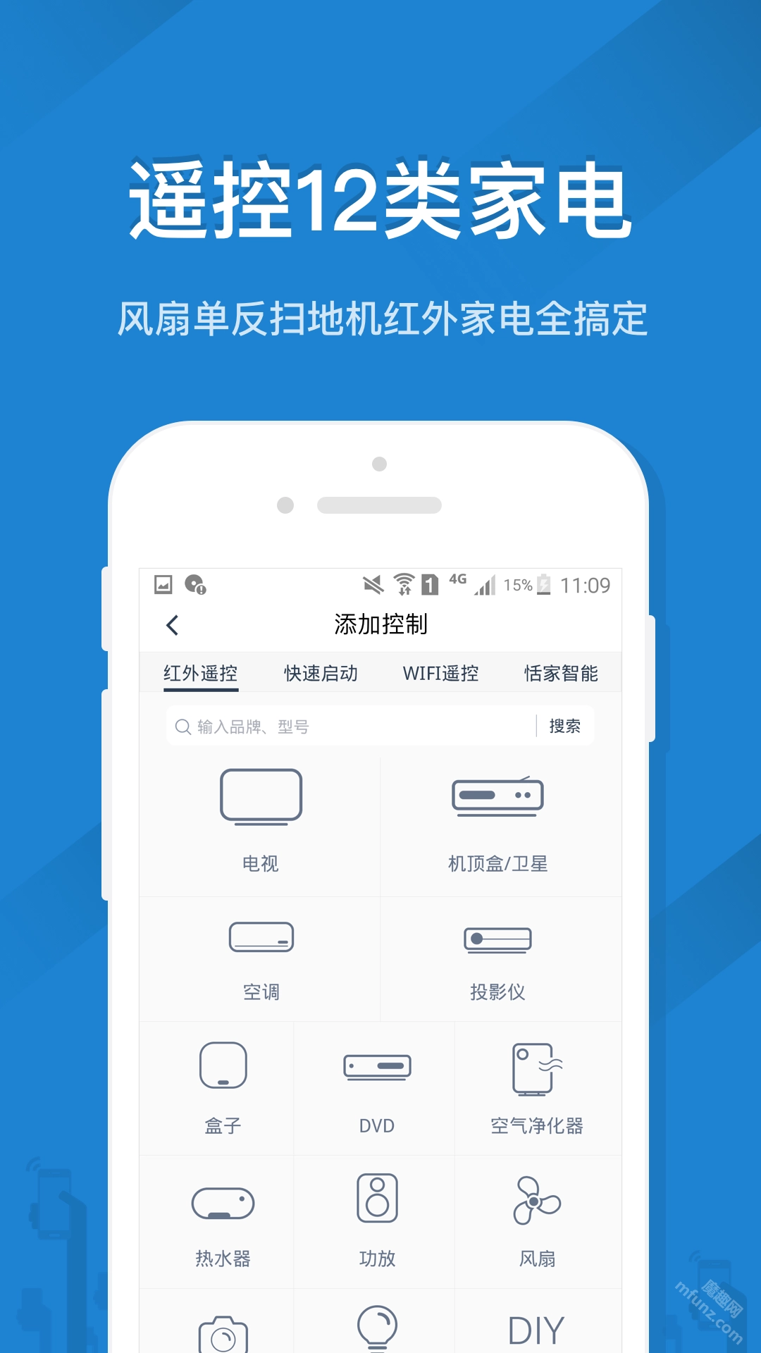 5、操作便捷:用户只需完成安装,就能轻松把手机变成遥控器,无论何时何地都能操控家中电器。