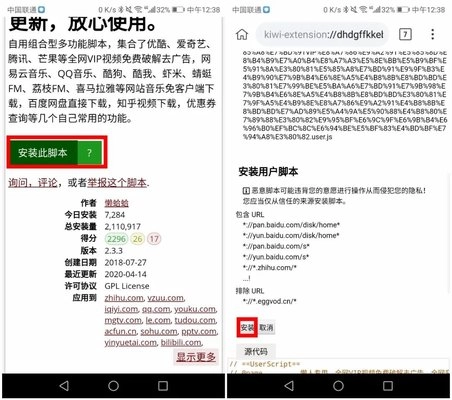 点击“安装”按钮,耐心等待脚本安装完毕,之后就能在浏览器的网页中使用对应的功能了。