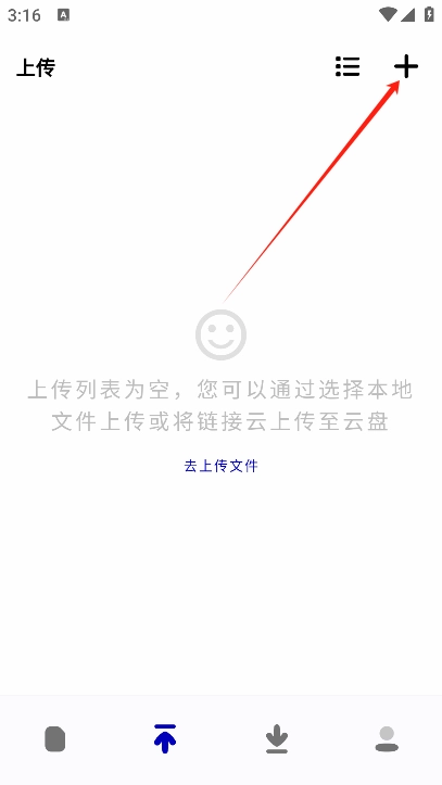 3、上传文件:进入上传页面后,点击右上角的“+”按钮,选择需要上传的文件就能完成操作。