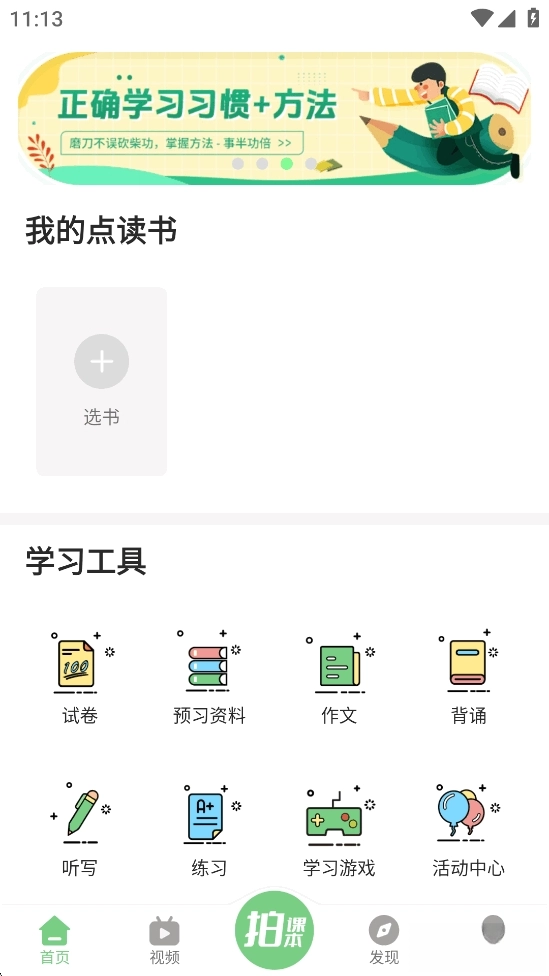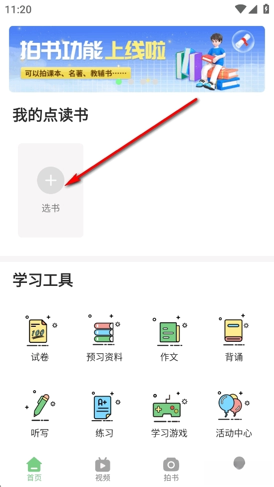 要是没找到你需要的课本,就点击【拍书】按钮拍摄课本并导入,之后就能进行点读啦
