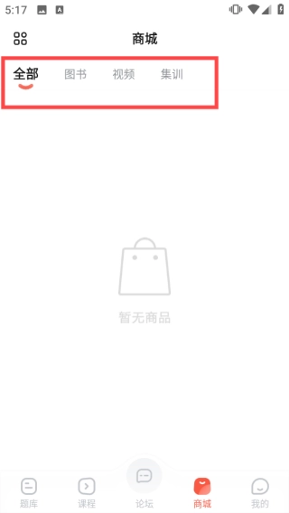 进入商城后,可通过顶部的【全部】【图书】【视频】【集训】分类来查找所需商品。