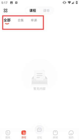 在课程界面,您可以通过顶部的【全部】【合集】【单课】分类选项,选择对应的课程开展学习。