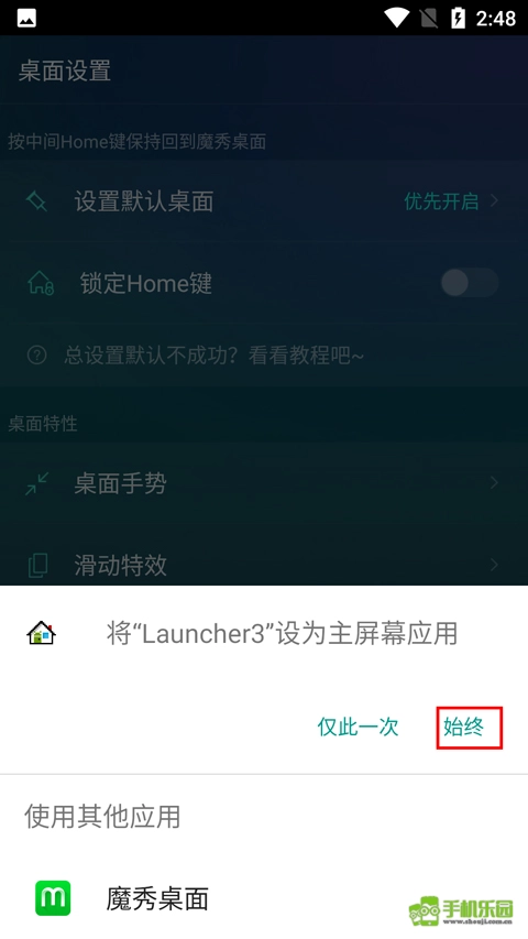 4、等弹出选项后,选择魔秀桌面,再点击确认设置,就能完成设置啦。