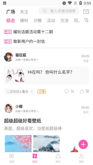 为用户的交流社区,在此可与其他用户交流日常、或者分享好看的壁纸