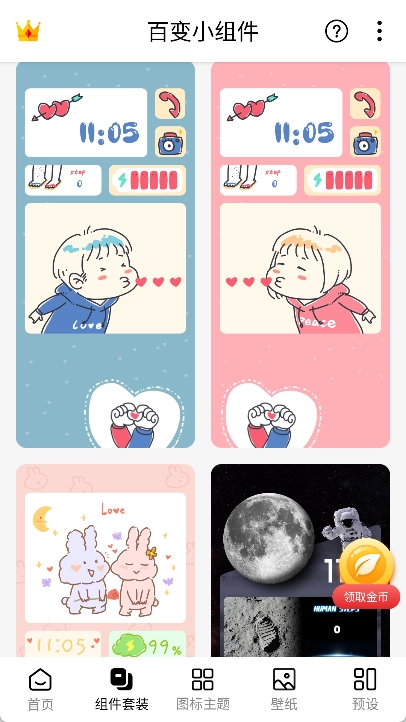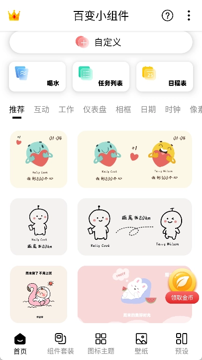 打开软件后,在首页挑选你心仪的小组件,然后把它保存到预览页面。