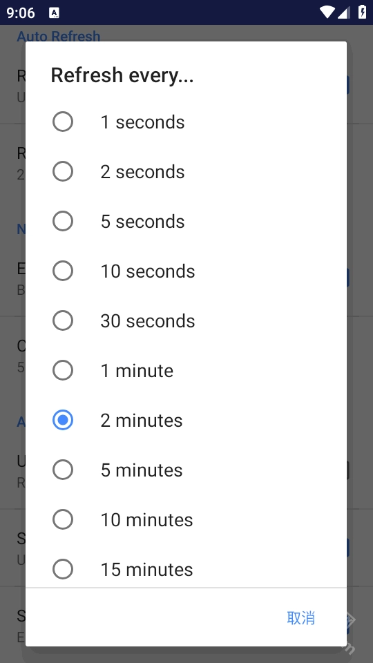 刷新间隔:在此设置自动刷新的间隔时间。