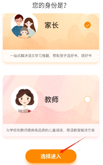 2. 接着选择对应的身份,若为家长则选择“家长”身份,若为教师则选择“教师”身份