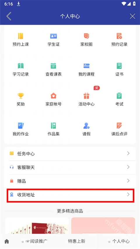 3. 进入个人中心页面后,向下滑动找到收货地址选项,点击进入该页面。
