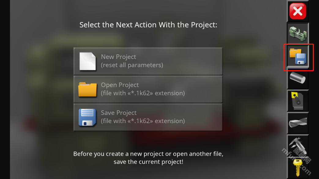2. 点击右侧的【文件夹】图标,您能够选择新建一个项目,或者打开之前创建好的项目。