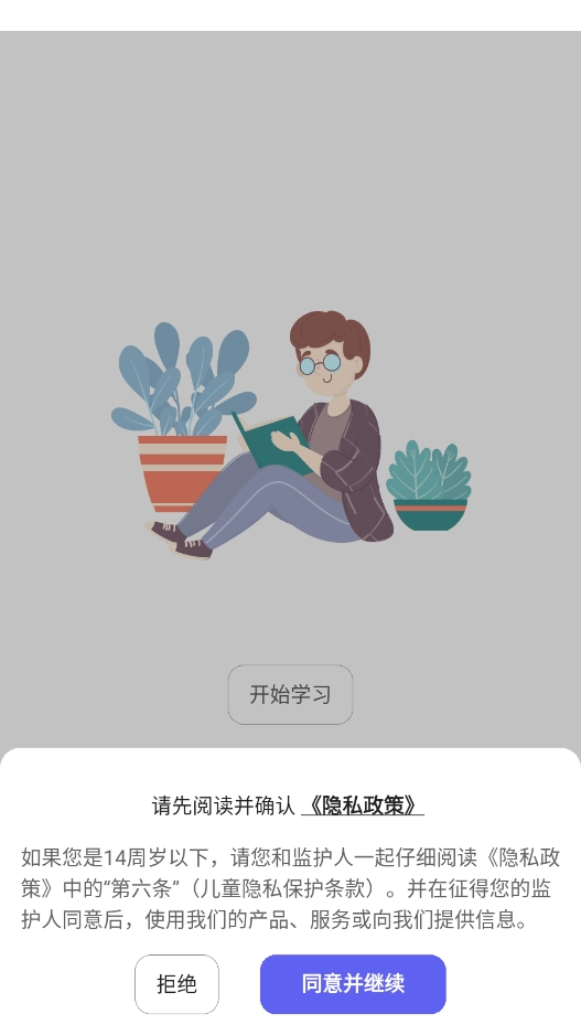 1、安装畅快聊英语应用,在同意相关政策与协议后进入应用。