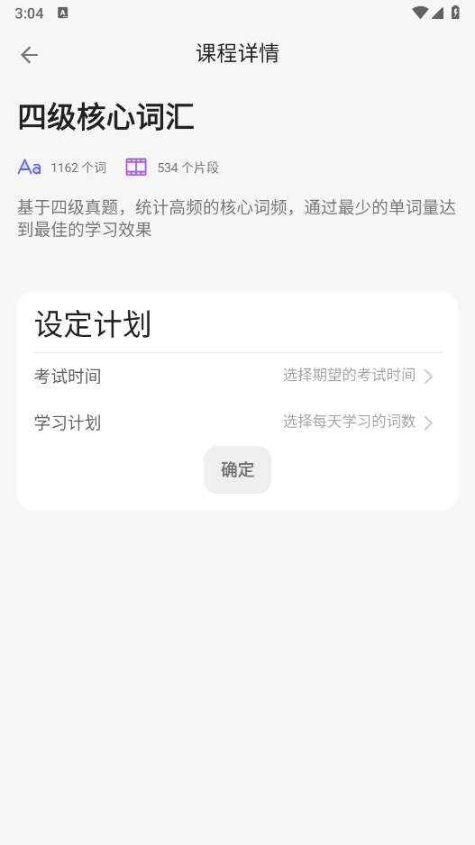 3、举个例子,像小编选的“四级核心词汇”,点进去后,就能设置考试时间和学习计划之类的内容。