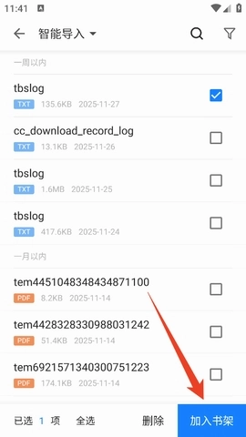 4、接着就能够把你想要导入的本地小说添加到书架里了。