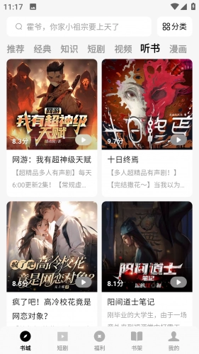 3、完善的分类体系涵盖了都市、古言、影视改编及有声小说等各类优质书籍资源。