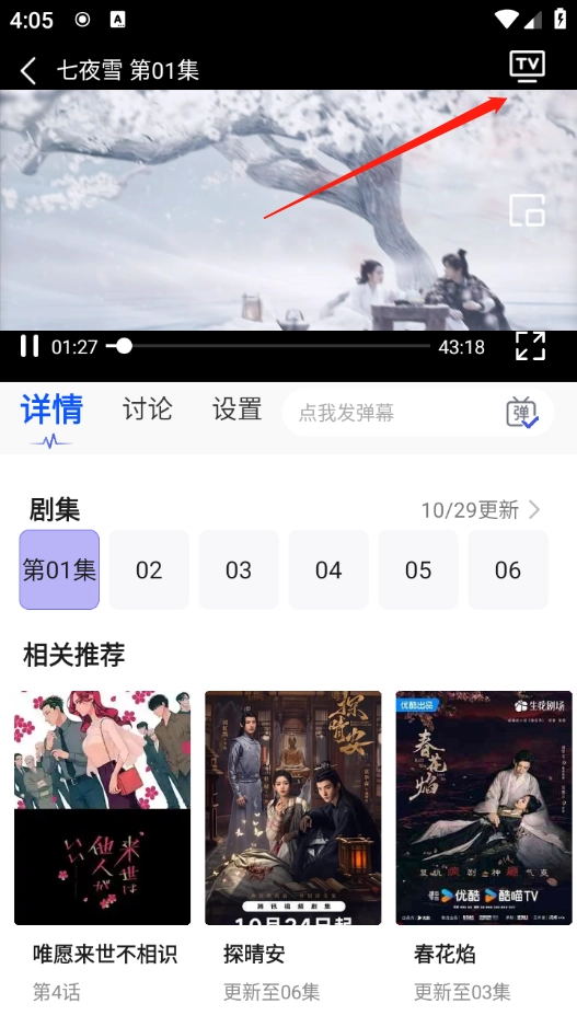 3、点击右上角的“TV”图标进行投屏操作,随后选择需要投屏的目标设备。