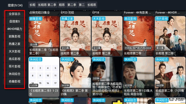 1、搜索结果的左侧区域能够选择平台,不同的平台对应着不同的播放源。