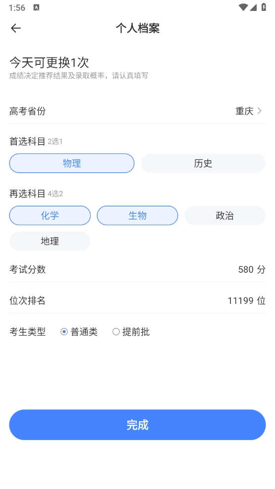 2、进入首页后,点击左上角的编辑按钮,在弹出的页面里,填写高考分数、选课方向、类型等相关信息。