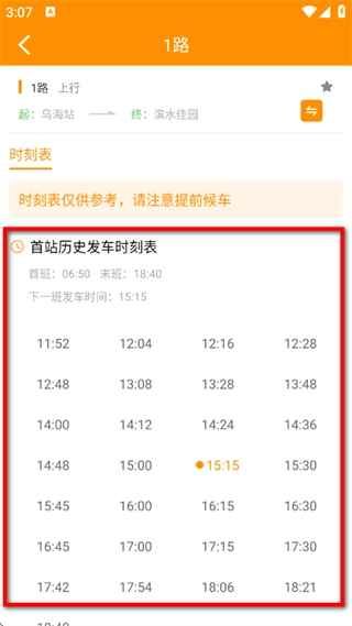 乌海智慧出行如何查询时刻表和时间