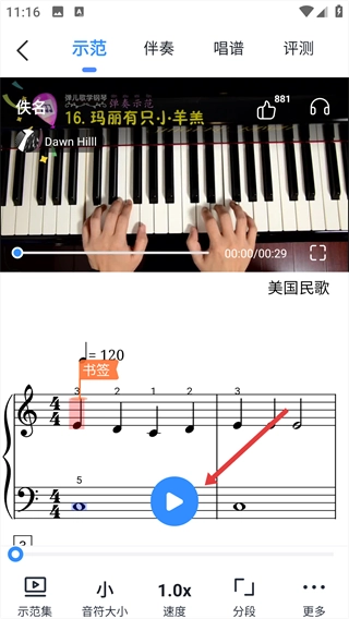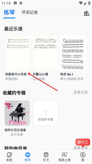 2、在“最近乐谱”区域找到你想查看的曲目,点击进入该曲目的示范界面。