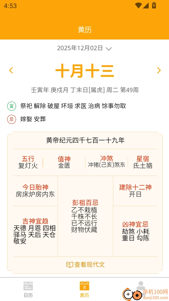 5.最后进入“黄历现代文”界面,就可以查看详情内容了