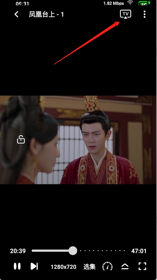 1、打开想要观看的影视作品进入播放页面后,点击页面右上角的“TV”按钮。