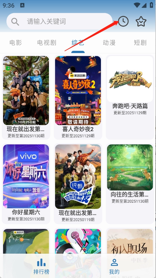 1、进入到首页点击右上角的历史。