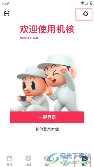 2、点击页面右下角的“我的”板块,先完成账号登录操作,之后找到并点击右上角的齿轮形状图标。