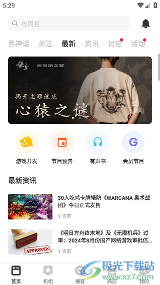 1、打开手机里的GCORES机核应用,进入首页后就能浏览到各类游戏的最新资讯。