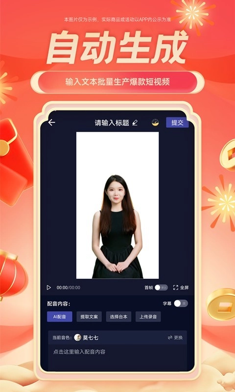 5、进入该界面后,你能够输入标题,还可以通过选择AI配音、提取文案、上传录音等多种途径来生成视频,简单便捷地完成个性化创作。