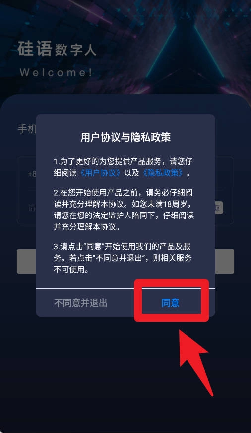 1、首次进入应用时,系统会弹出用户协议和隐私政策的提示窗口,需要点击“同意”按钮完成确认,之后才能继续使用相关功能。