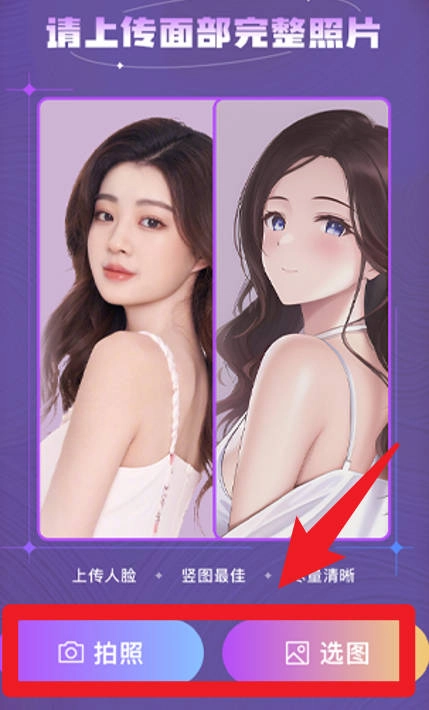 4、进入漫画功能页面后,你可以选择拍照或者从相册中选取图片,系统会依据你提供的人脸图像,生成具有漫画风格的照片。