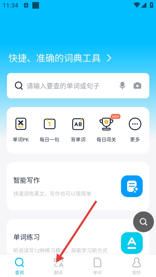 2、在查询页面底部的功能栏里,点击【翻译】选项就能进入翻译页面。