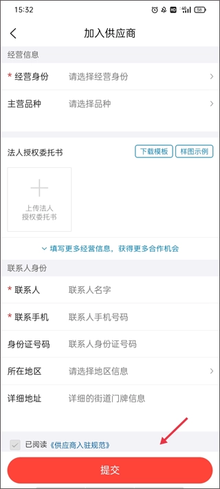 3、查看加入供应商的权益与要求后,点击“申请成为供应商”。