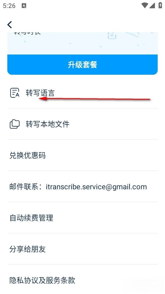 然后我们在这个界面选择转写语言。