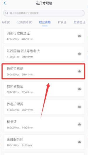 2、根据需求点击相对应的证件。