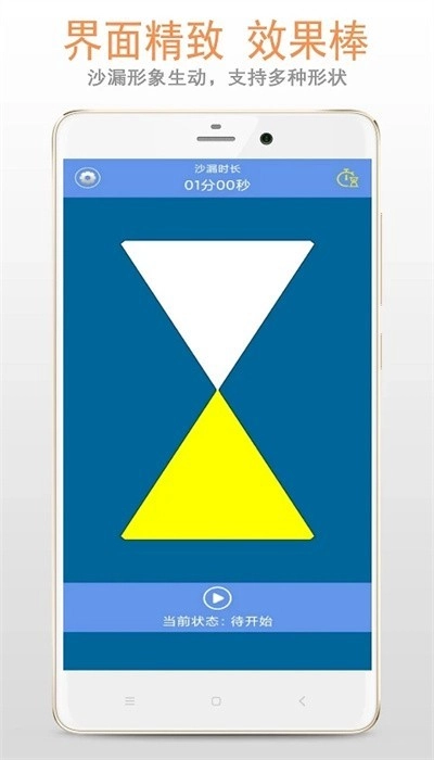 沙漏倒计时是一款功能专业、操作高效的智能计时工具软件。非常适用于工作专注时段、考试复习备考、日常运动训练等多种需要精确时间管理的场景,帮助使用者对任务进程进行精准控制。它支持使用者自定义计时时长,提供了振动、响铃、视觉提示等多种提醒方式,搭配直观的动态沙漏界面设计,让时间流逝可视可感。感兴趣的朋友快来试试吧!
