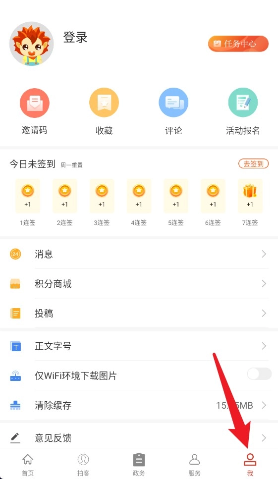 4、我页面包含登录、签到、收藏、积分商城等功能,便于用户管理个人账户。