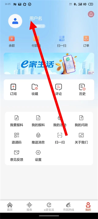 2、在个人页面,点击用户名区域,进入登录界面。