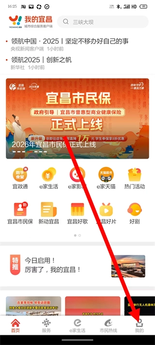 1、在我的宜昌首页,点击底部我的按钮,进入个人页面。