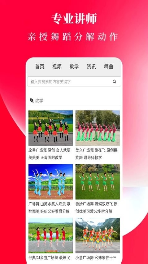1、浏览与搜索视频,用户可在首页推荐流中浏览视频,或通过搜索功能直接查找特定舞曲、风格或老师的教学内容。