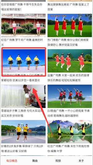 2、选择红色框框中的舞蹈视频。
