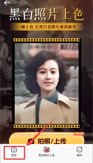 2、修复与美化老照片,上传模糊或黑白老照片,分别使用修复工具优化清晰度,并使用智能上色功能为其添加自然色彩。