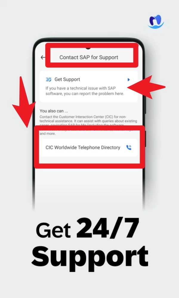 4. 点击「联系我们」选项,可快速连结技术支持或全球客服热线,随时获取 SAP 协助。