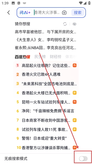 2、如果需要进入无痕浏览模式,在下方打开无痕浏览开关就可以开启了哦。