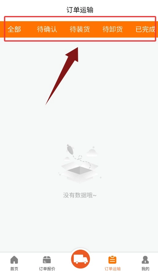 4、订单运输界面按运输状态分类展示,涵盖全部、待确认、待装货等状态。