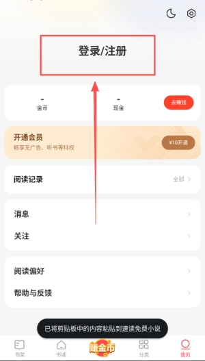 1、第一步先把应用安装好,接着完成注册流程,登录账号后就能尽情浏览海量优质小说资源,正式开启你的阅读之旅啦。