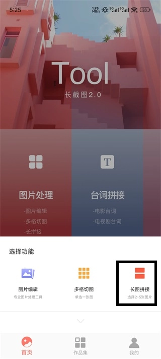 1、打开Picsew长拼图App,在功能选项里挑选【图片处理】或者【长图拼接】。