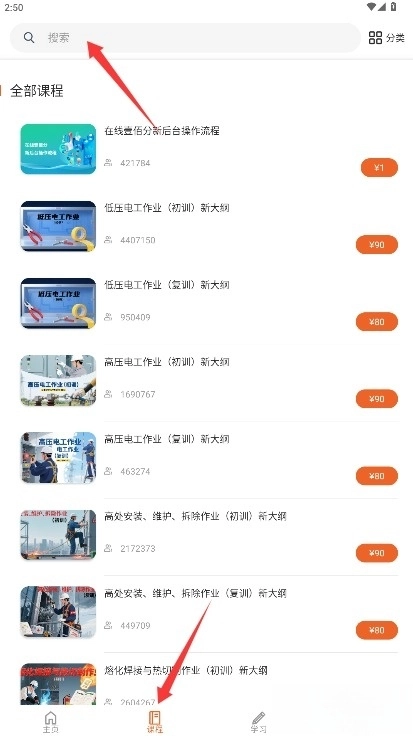 3、进入课程页面可通过搜索功能查找目标课程内容,或浏览系统推荐的学习资源。