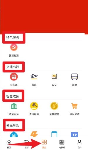 2、进入服务板块后可查看政务、交通、法律、采购等便民服务项目,实现一站式便民事务办理。